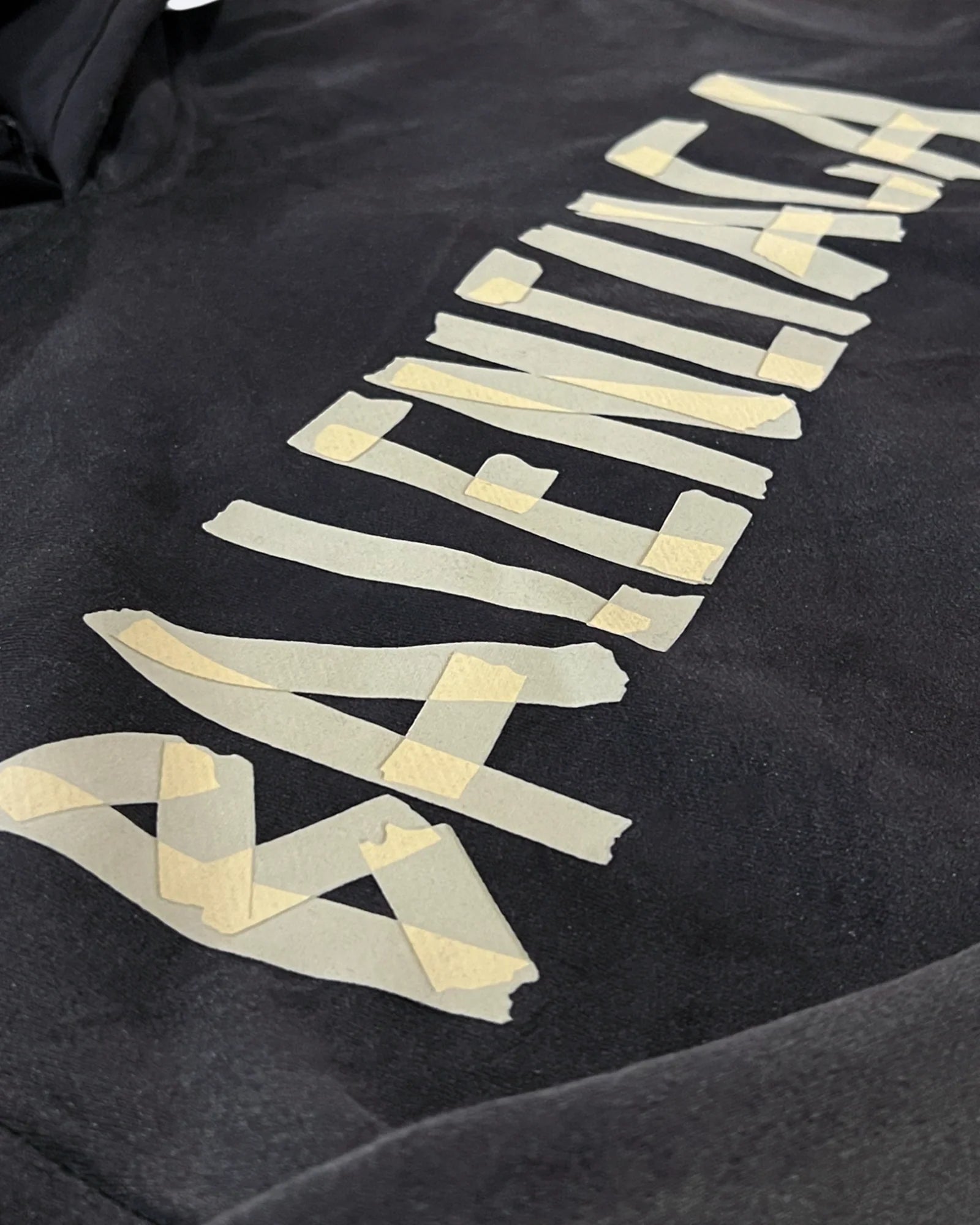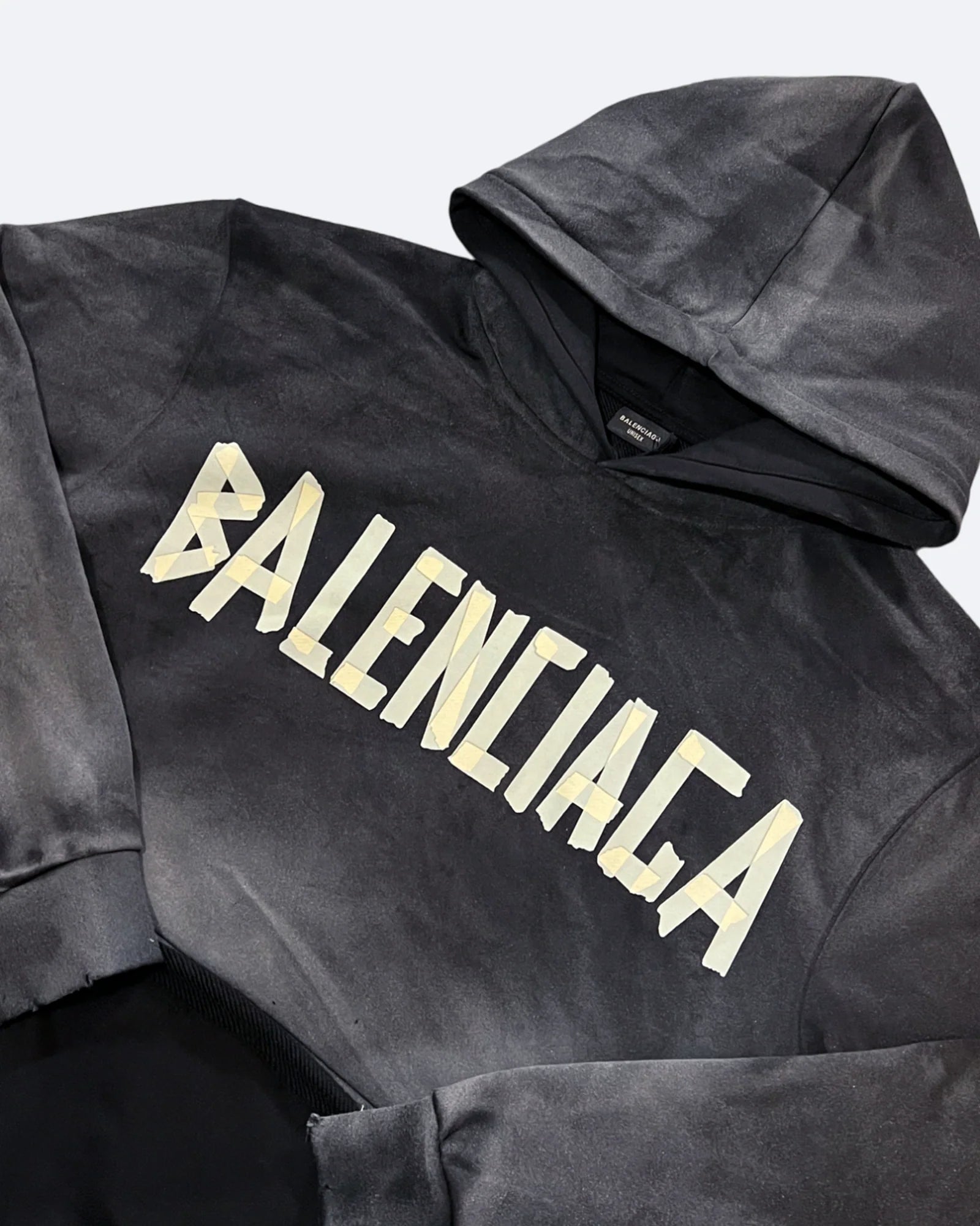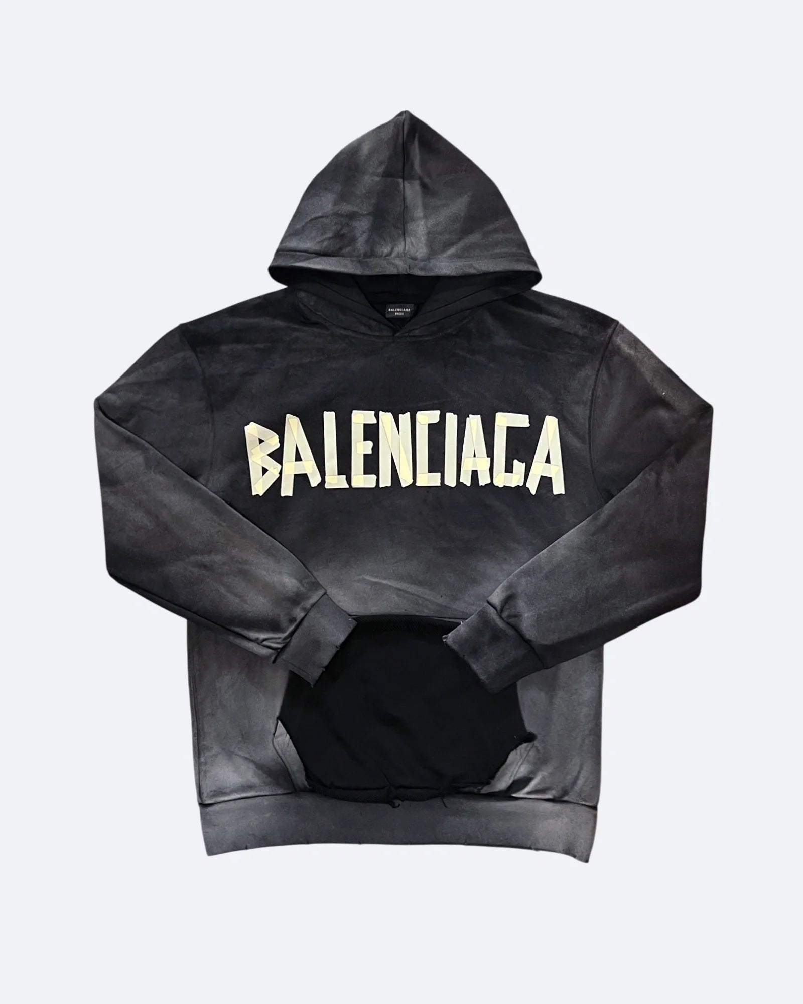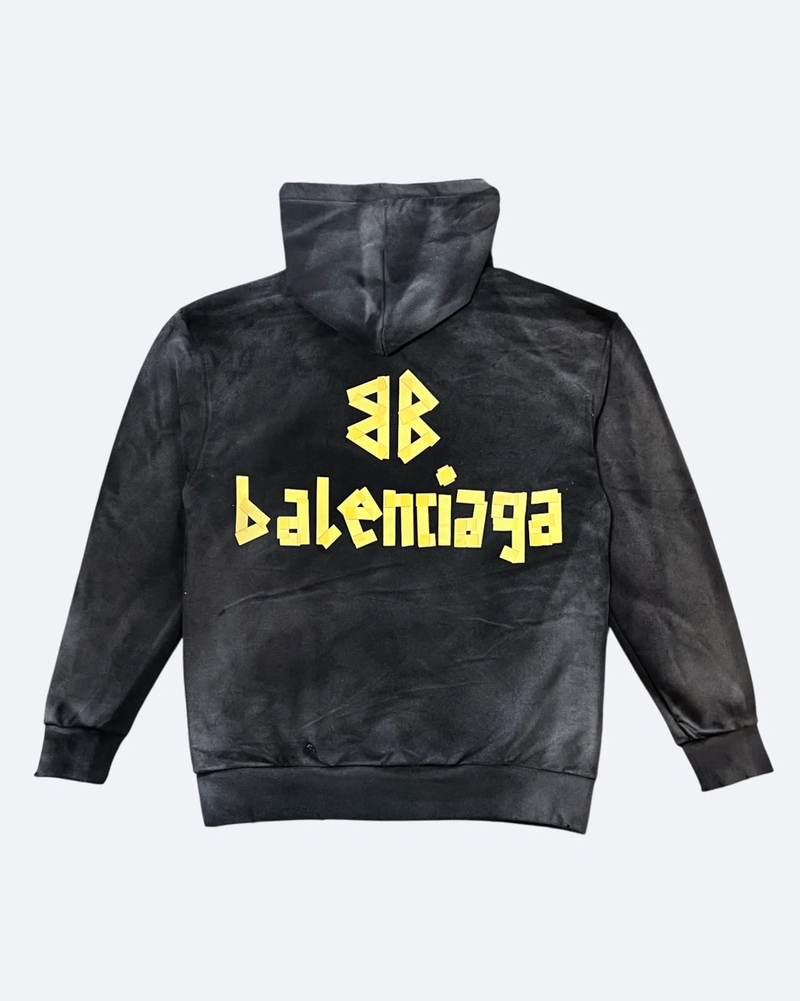 Balenciaga - Yellow Tape Distressed Hoodie - Washed Black